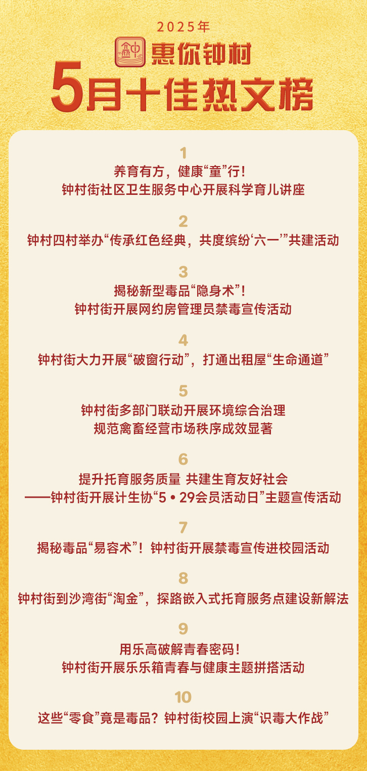 比学赶超,锐意进取!5月,“惠你钟村”南方号百名通讯员同台竞技,热闹非凡。 据统计,上个月,平台累计发布43篇原创稿件,禁毒宣传进校园、传承红色经典、环境综合整治、社区防灾灭蚊等活动获得街坊一致好评。...